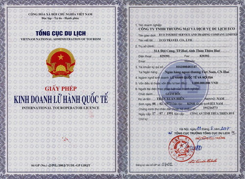 Our company holds an International Business License #0701/2007 VNAT, issued by the Vietnam National Administration of Tourism. This accreditation signifies our status as an expert Travel Agent with the legal authority to provide tourism services. With these credentials and capabilities, tourists consistently place their trust in the services we offer, and we guarantee the quality of services provided by Eco Nature Travel Co. Ltd.
